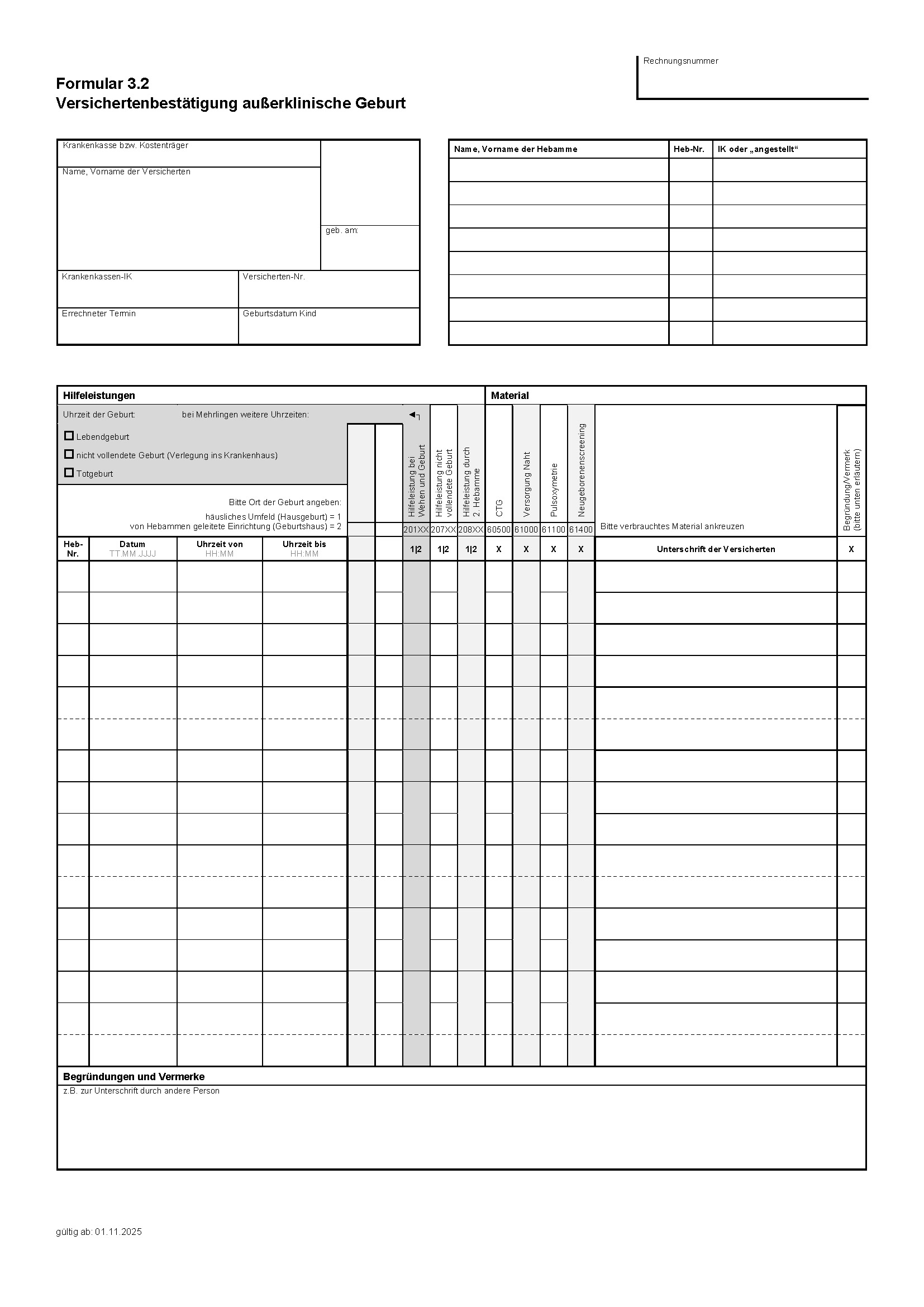 NEU: AB 01.11. AZH MultiBo 3.2 Versichertenbestätigung außerklinische Geburt
