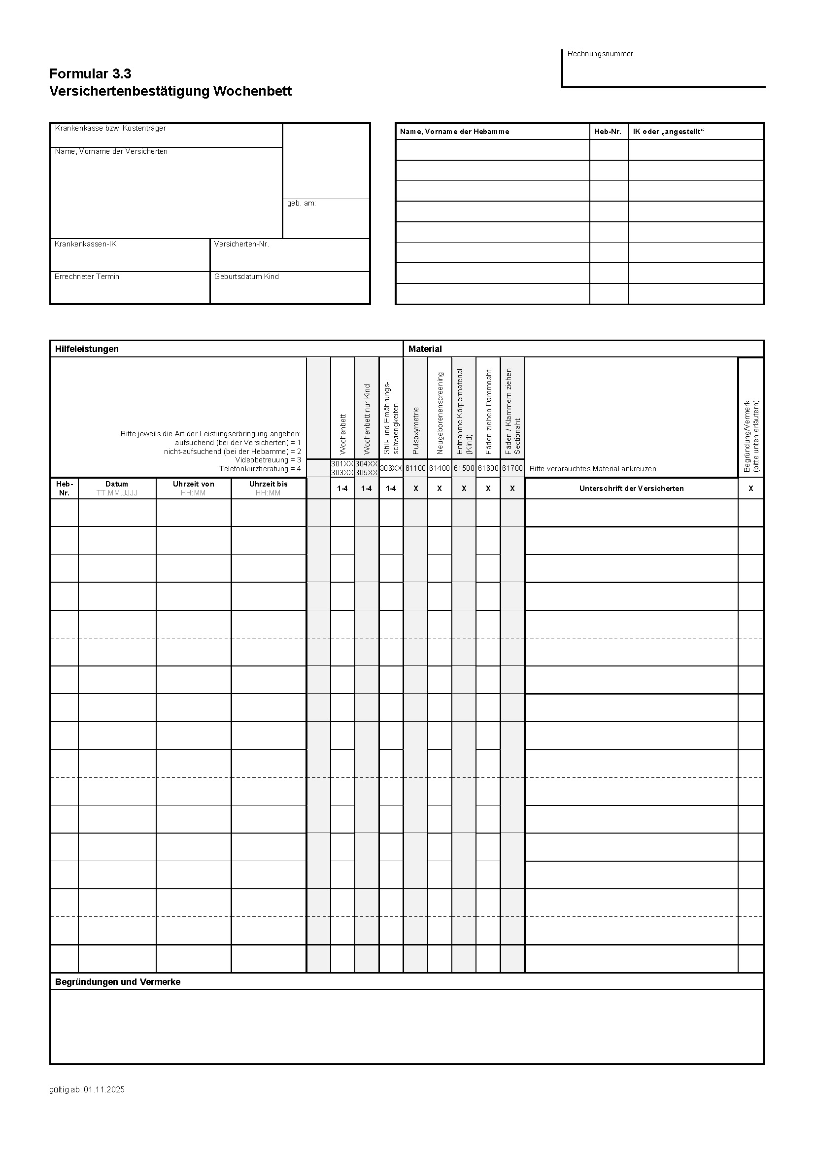 NEU: AB 01.11. AZH MultiBo 3.3 Versichertenbestätigung Wochenbett