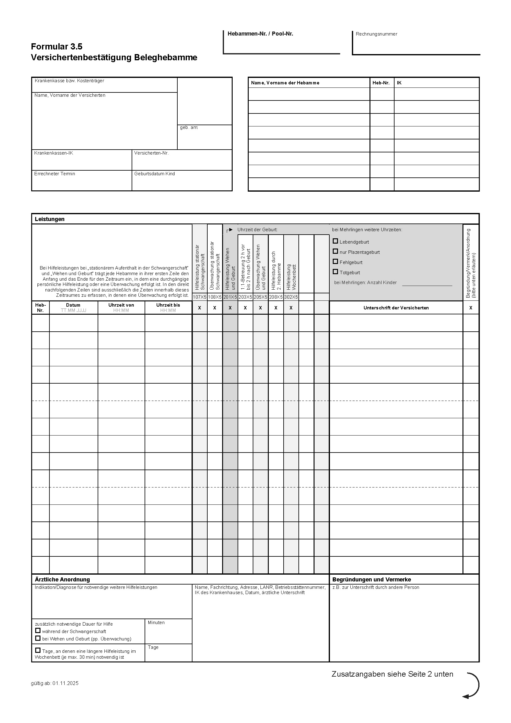 NEU: AB 01.11. AZH MultiBo 3.5 Versichertenbestätigung Beleghebamme